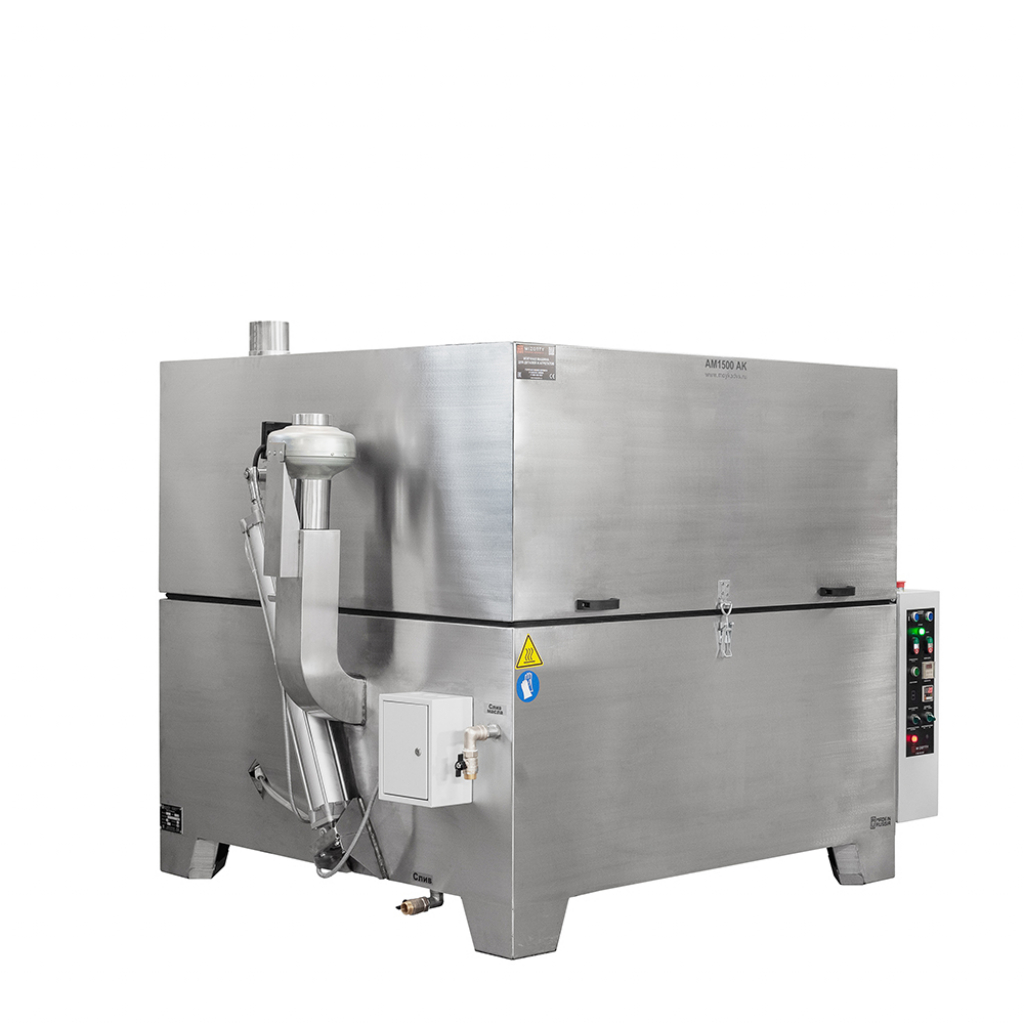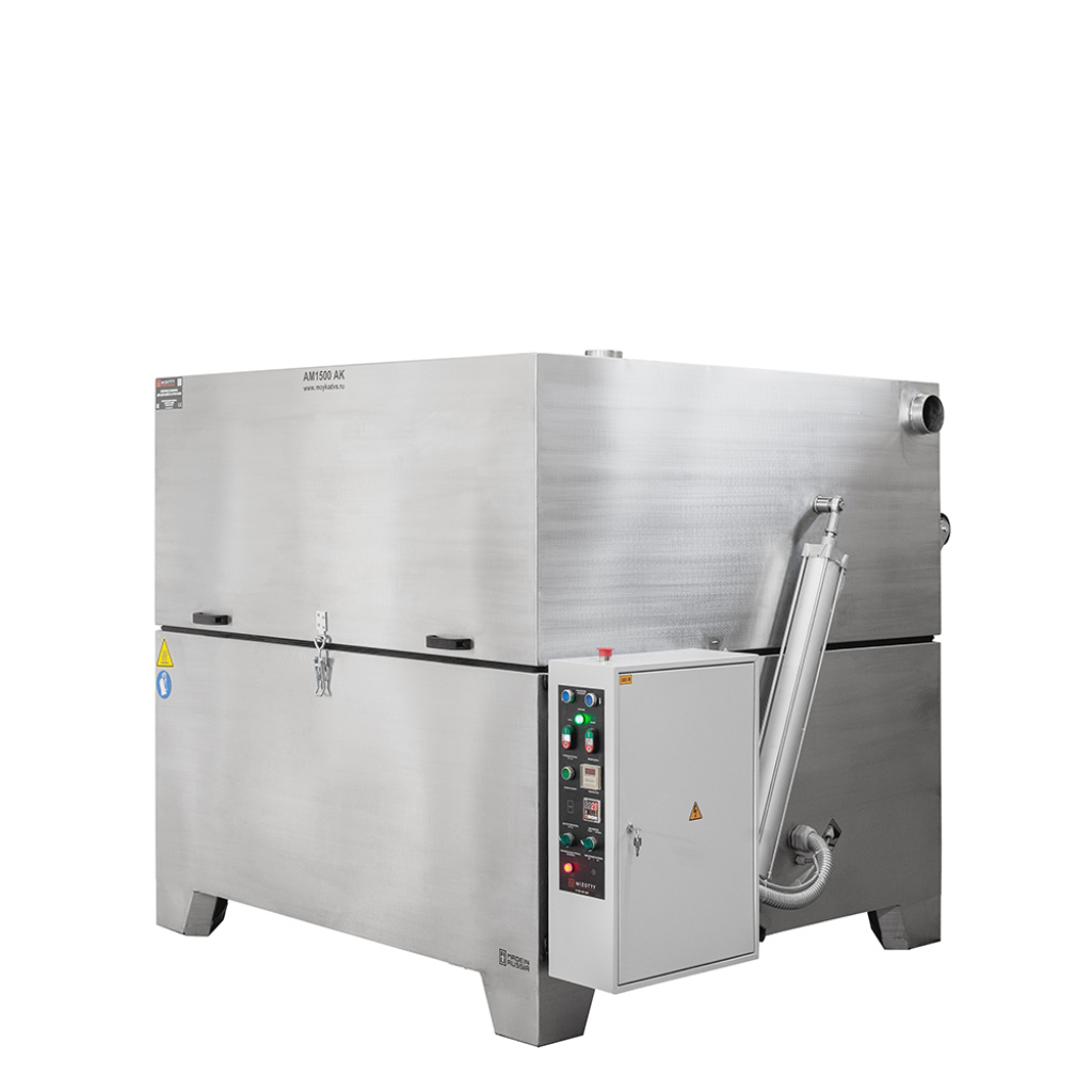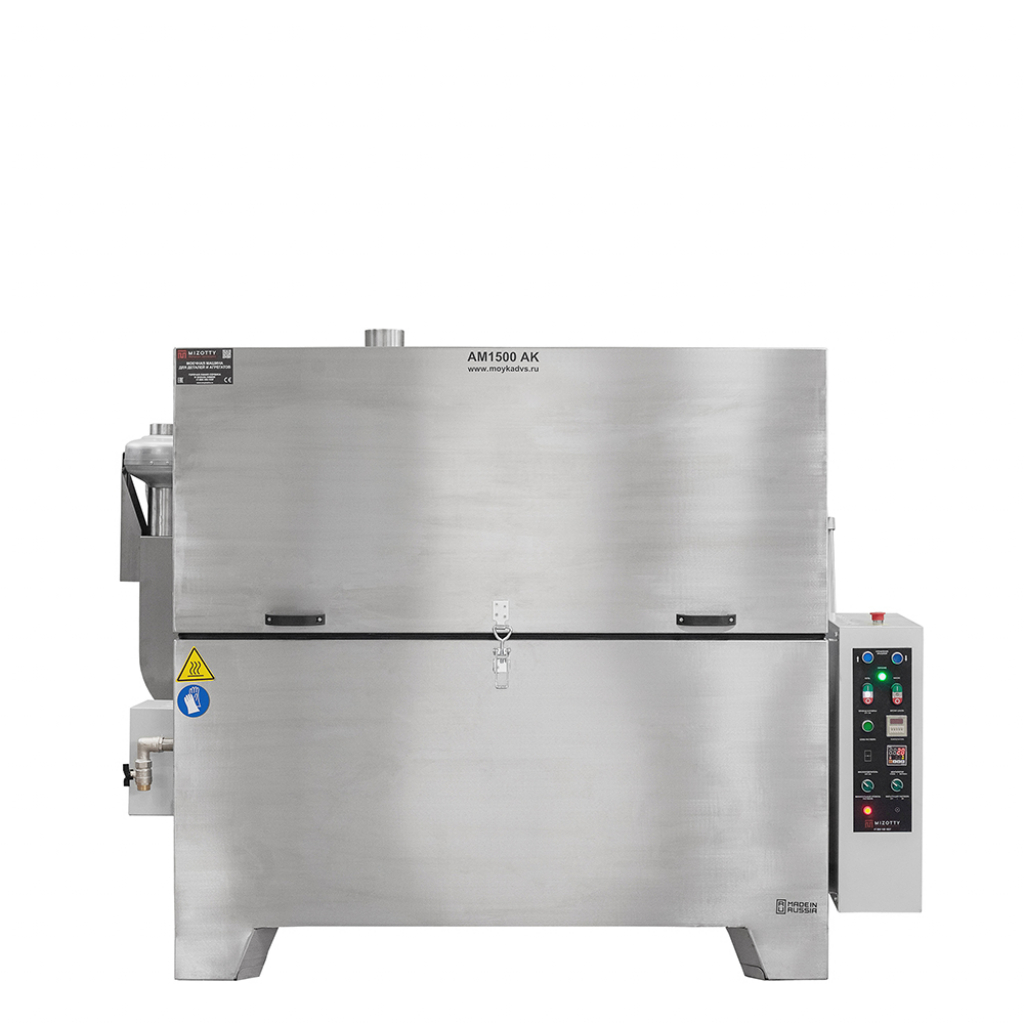 Температура и продолжительность цикла обработки задается на панели управления. Вращение корзины обеспечивает необходимое позиционирование деталей перед коллекторами. Парная П-образная форма рамп позволяет промывать изделия сверху, снизу и сбоку в течение заданного времени. Автоматические промывочные установки серии АМ предназначены для использования со слабощелочными растворами. Для наполнения бака используется обычная водопроводная вода.