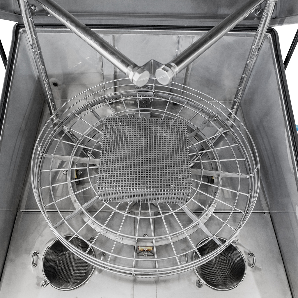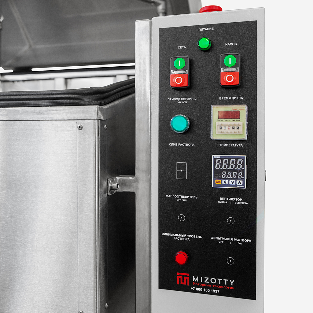 Линейка комплектуется электромеханическим приводом корзины с частотой вращения 5-10 об/мин., обеспечивающим высокое качество очистки, за счет равномерной подачи моющего раствора по всей поверхности деталей.