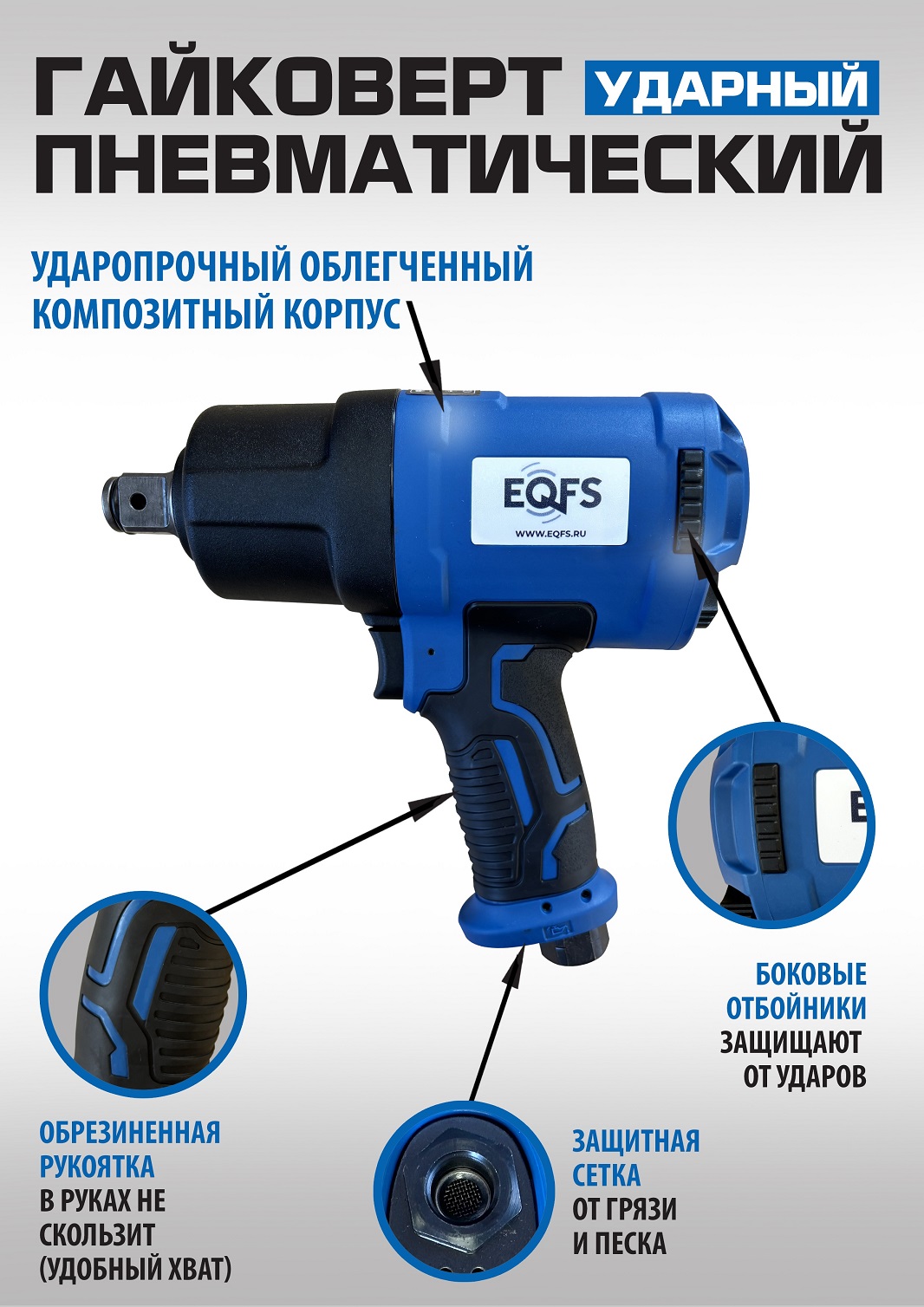 Преимущества ES-7135K Пневмогайковерт 3/4" +набор головок: