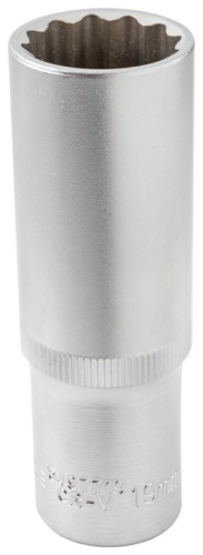 Головка торцевая глубокая 19мм 1/2" 12 граней от бренда ROCKFORCE предназначена для работы с крепежными элементами. Её 12 граней обеспечивают надежное и точное соединение с гайкой или болтом. Размер головки составляет 19 мм, а диаметр квадрата - 1/2 дюйма. Изготовленная из высококачественной хромованадиевой стали, она обеспечивает прочность и долговечность.