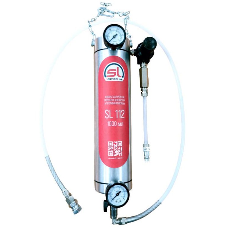 Установка SL-112 - компактная установка, предназначенная для промывки элементов топливных систем бензиновых двигателей и воздушного тракта без демонтажа, непосредственно на работающем автомобиле.