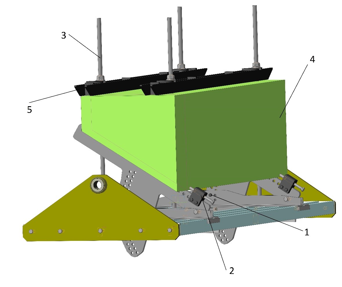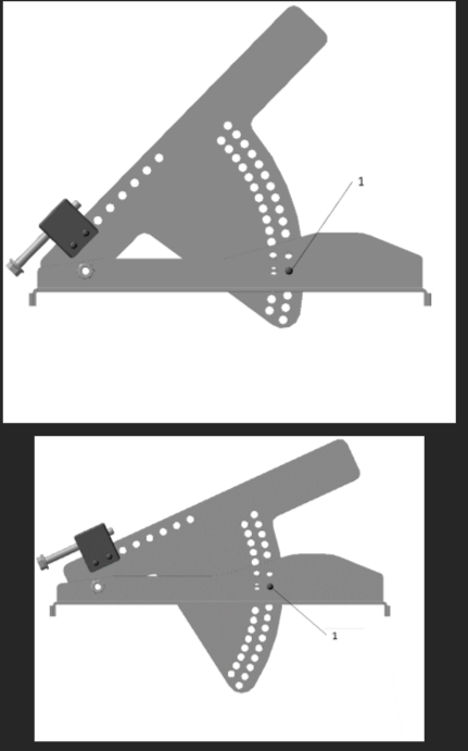 На подвижной части два ряда отверстий для плавной регулировки угла наклона косой опоры. Фиксация подвижной части косой опоры в нужном положении происходит пальцем (1). Палец устанавливают в пересечение отверстий.
