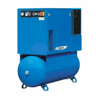 Компрессор винтовой комбинированный Remeza ВК15Е-10-500Д - представляет собой винтовой компрессорный блок, соединенный с промышленным электродвигателем через клиноременную передачу. Движущиеся части устройства помещены в корпус, выполняющий защитные функции и частично поглощающий воздушные шумы от работы агрегатов. Компрессор выполнен в виде моноблочной конструкции на ресивере с регулируемыми опорами. Его установка не требует проведения подготовительных работ по заливке фундамента. Устройство оборудовано осушителем воздуха, эффективно отделяющим конденсат, а также двухступенчатой системой очистки от масла.
