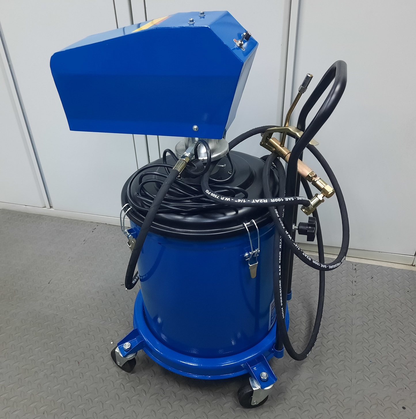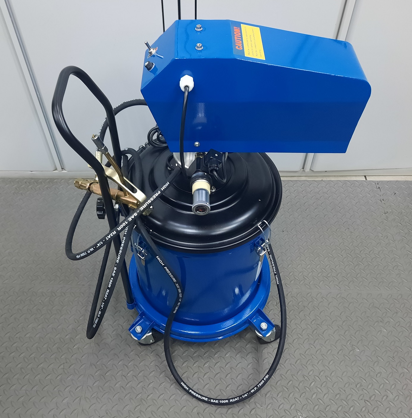 Корпус нагнетателя смазки – стальной, насос изготовлен из анодированной стали. Нагнетатель оборудован маслобензостойким армированным шлангом длиной 5 м. Насос для консистентной смазки. Производительность 750 г/мин. Солидолонагнетатель для консистентной смазки, установленный на колесах, имеет легкий вес и экономичную конструкцию для удобства перемещения и эксплуатации.
