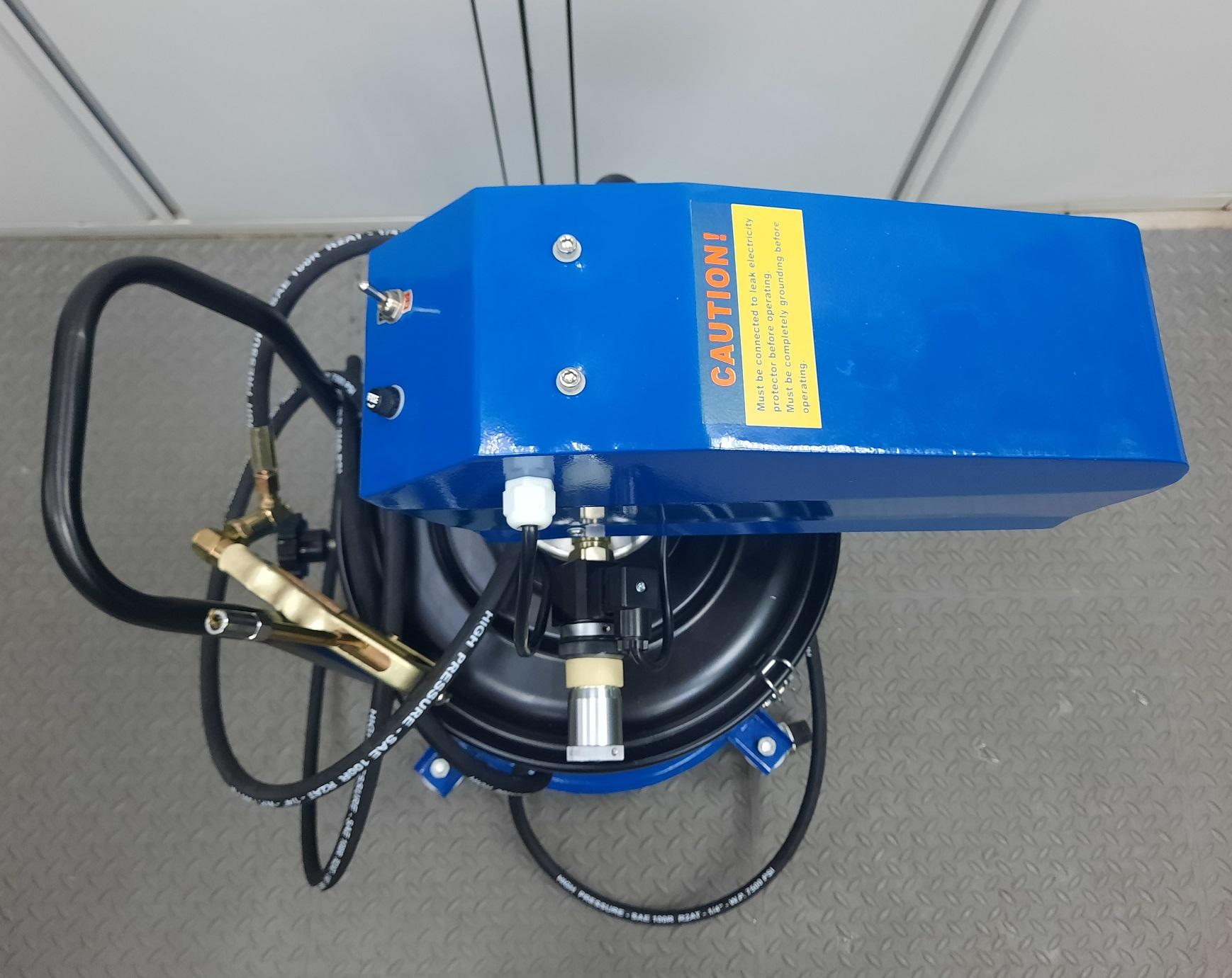 Электрический. На колесах. Можно использовать на ведро. Для шприцевания: подшипников, крестовин, осей, шестерней, валов, цепей, тавотниц. Заправка смазкой из ведра, тубы, бочки. Имеет легкий вес и экономичную конструкцию. Передовые технологии изготовления из материалов высшего класса, отличная производительность перекачки гарантирует долговечность и безопасность продукции в условиях работы под высоким давлением. Мощность 250 Вт. Напряжение 380 В на выбор. Объем бака 38 л. Давление смазки 200 бар. Пистолет с наконечником производительность 750 г/мин. оборудован "Z" образным шарниром для удобной и беспрепятственной работы в трудно доступных местах. Габариты: 830X540X445 мм, вес 32,7 кг, длина шланга 5 м.