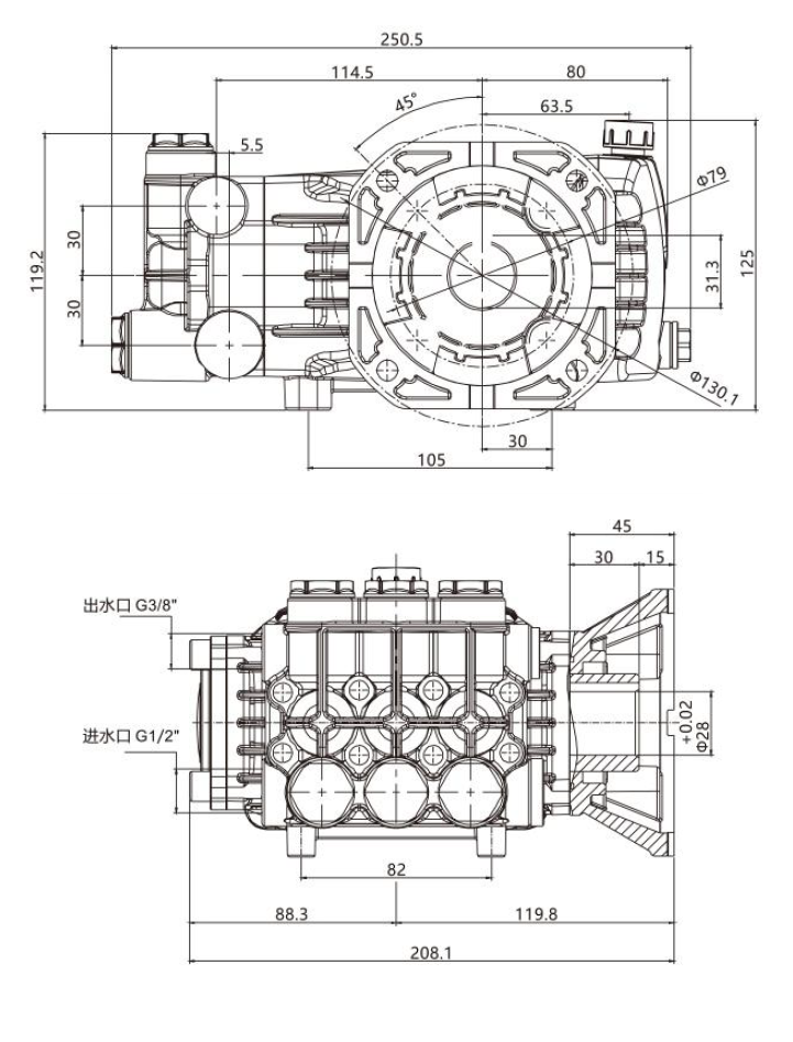 Соединение с мотором внутренний вал 28мм, межосевое 92мм