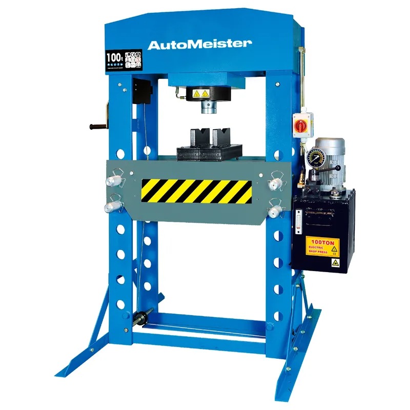 Пресс электрогидравлический AutoMeister 100т T0983H - это профессиональный напольный пресс с перемещаемым цилиндром вправо-влево. Усилие пресса составляет 100 тонн. Управление силовой подачей штока цилиндра осуществляется с помощью электроуправления. Пресс оснащен прочной сварной станиной. Рабочие параметры: напряжение 380 В, мощность — 1,5 кВт.