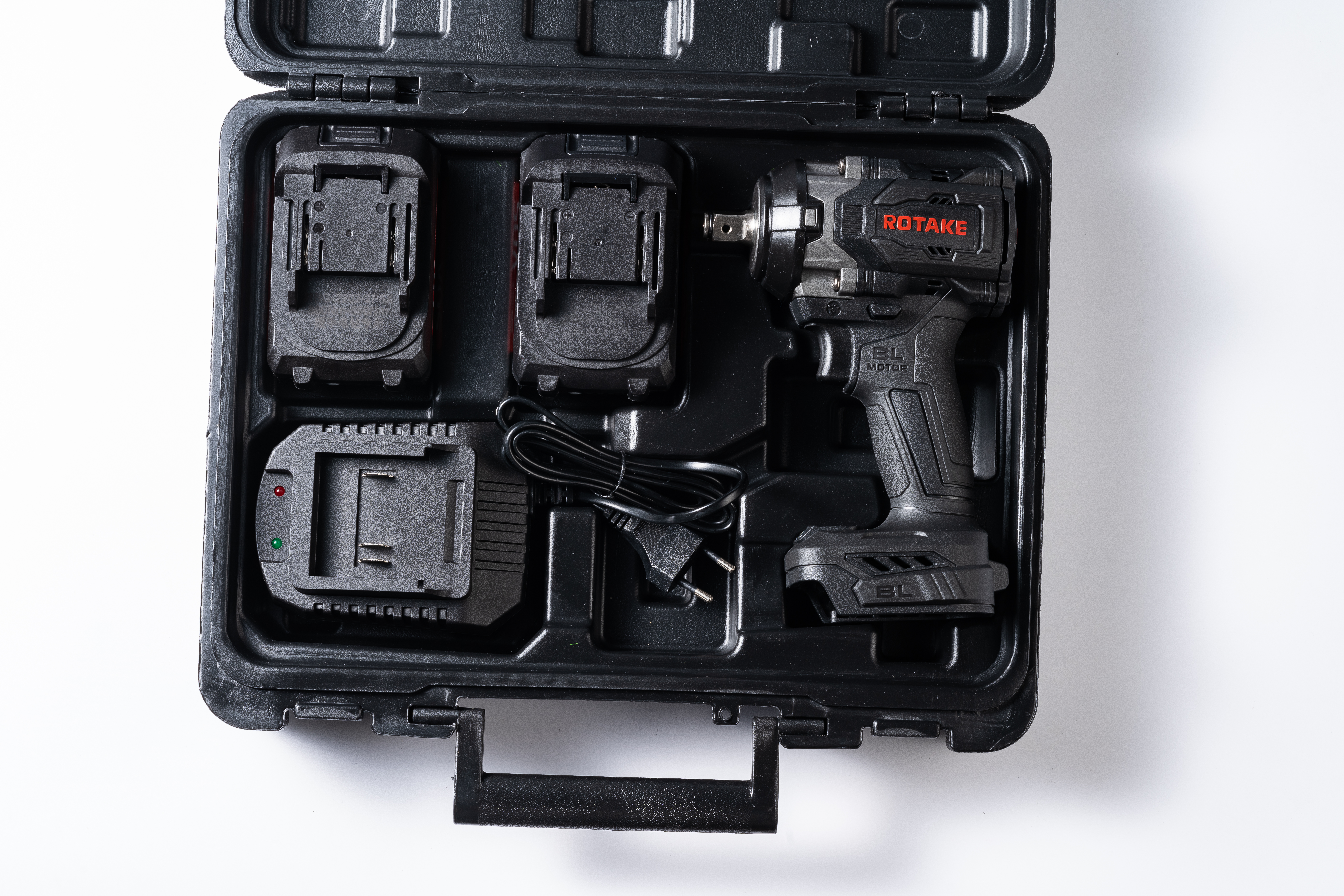 Гайковерт аккумуляторный RC8802 Не нуждается в пневмосети и электросети. Мощный ударный аккумуляторный гайковерт Rotake для закручивания и откручивания болтов и гаек, с максимальным крутящим моментом 890Н*м. Высокоскоростной бесщеточный двигатель гарантирует высокую мощность, а следящая электроника - продолжительную работу. Напряжение аккумулятора: 21В. 3 режима регулировки усилия. В комплекте предусмотрено 2 аккумулятора емкостью 4Ач и зарядное устройство 1,8A.