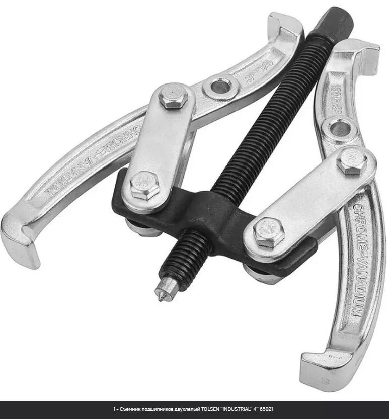 Съемник подшипников двухлапый TOLSEN "INDUSTRIAL" 4" 65021 - изготовлен из кованой стали с закалкой и покрытием хрома. Черная резьба обеспечивает долговечность и надежную работу инструмента.