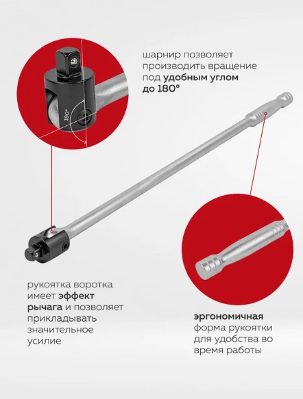 В отличие от инструментов с трещоточным механизмом, шарнирный вороток позволяет работать под нагрузкой, что делает его идеальным для более тяжелых и требовательных задач.