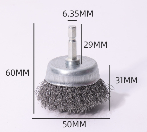 Щетка торцевая для дрели от для снятия различных покрытий с изделий и поверхностей. Изделие имеет плоскую форму, рабочая часть выполнена из высококачественной, прочной проволоки волнистой формы толщиной 0,35 мм. Хвостовик шестигранный диаметром 6,35 мм. Щетка предназначена для удаления ржавчины, покрытий из лака, краски и т.п.