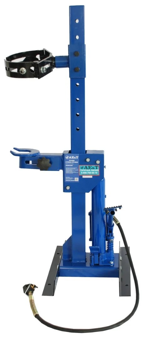 Данную модель можно без сомнения назвать универсальной — она может работать практически с любыми амортизаторами легковых и грузовых авто, как от ножного привода, так и от компрессора или пневмолинии. Разработка T01402P велась в постоянной тесной связи с российскими СТО и автосервисами — все их пожелания, требования и интересы были учтены и внесены в конструкцию. В итоге, изделие может похвастать высочайшей прочностью и долговечностью благодаря толстым и хорошо прокрашенным конструкционным материалам, качественной сборке, широким опорам и настраиваемым колодкам.