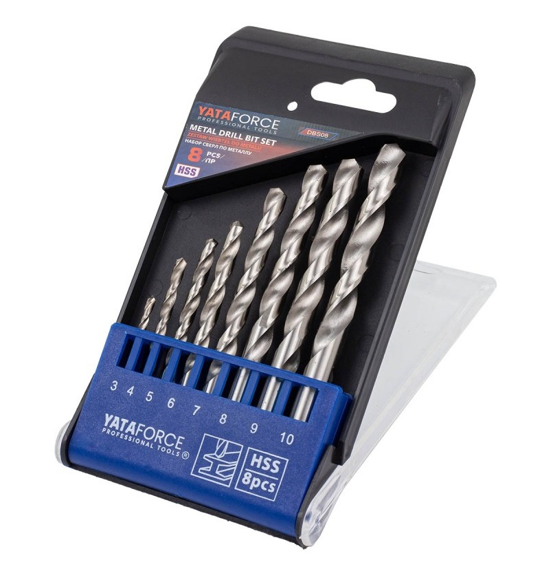 Набор сверл по металлу HSS 8 предметов от бренда YATAFORCE - это набор спиральных свёрл, предназначенных для сверления отверстий в металлических изделиях.