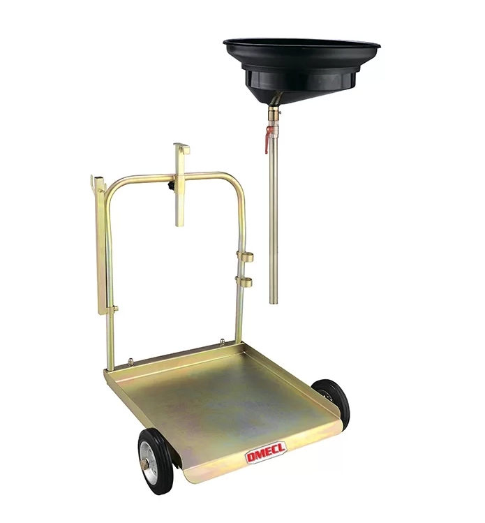 Чаша (воронка) для сбора масла устанавливается на нужной для работы высоте при помощи зажимного приспособления и не позволяет разбрызгивать масло при сливе. Сетка для улавливания мелких деталей. Тележка для 200л бочек укомплектована шаровым краном для контроля состояния сливаемого масла и других технических жидкостей перед началом слива в резервуар. Масса 24,5 кг. Размеры тележки: (ДxШxВ) 710*780*873 мм