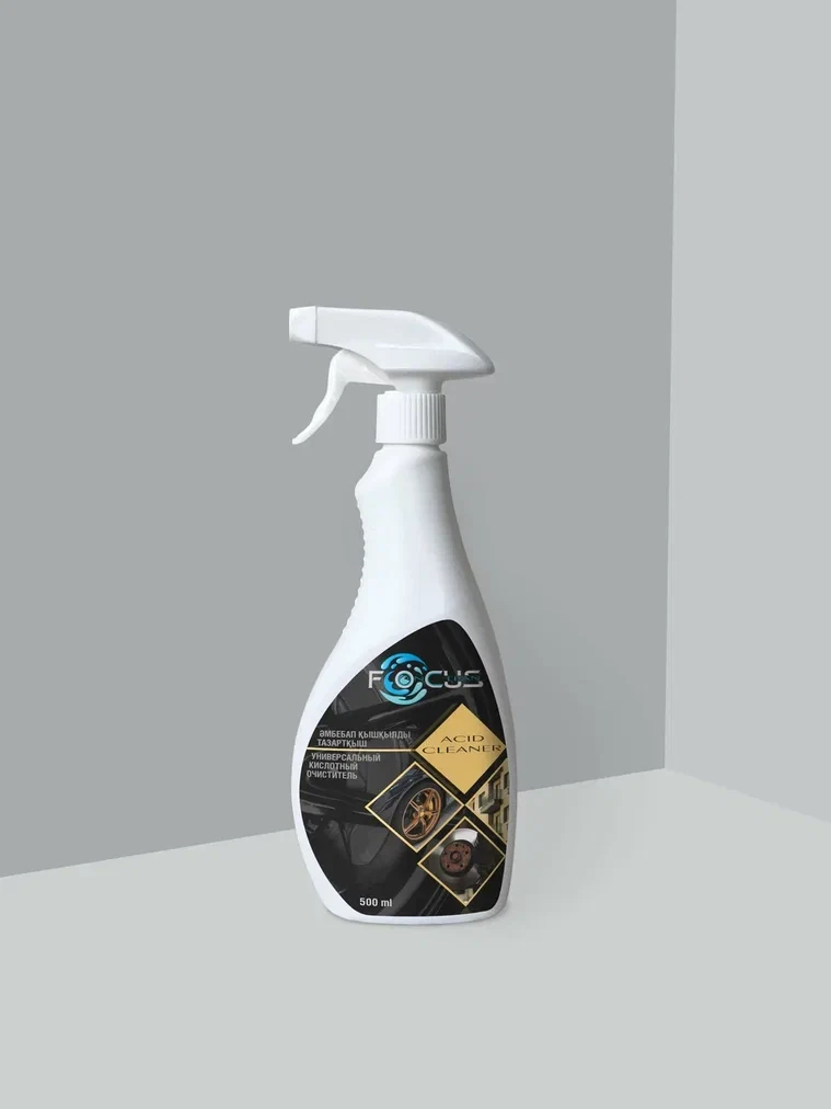 FOCUS Acid Cleaner — это профессиональное средство для удаления сложных загрязнений с устойчивых к кислотам поверхностей, что делает его идеальным выбором для использования в автомастерских и на мойках.