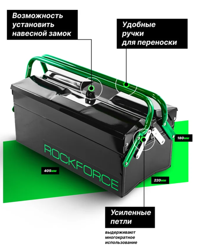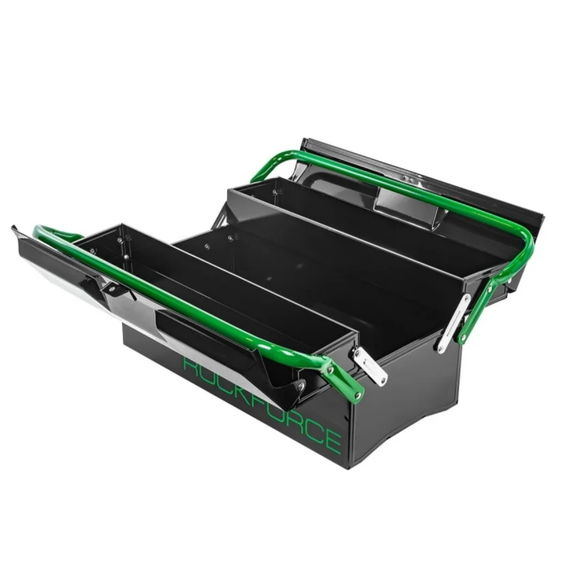 Ящик для строительных инструментов от бренда Rockforce — это надежный и прочный металлический органайзер, предназначенный для хранения различных инструментов, крепежных элементов и расходных материалов. Он идеально подходит для использования в мастерских, на стройках и в домашнем хозяйстве.