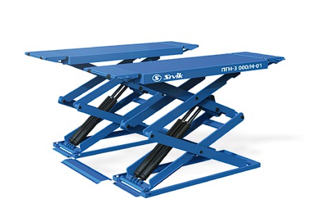 Ножничный напольный подъемник с короткой платформой, поднимающий автомобиль за пороги. Удобен в использовании при шиномонтажных работах, ремонте ходовой части, замене масла и т.д.