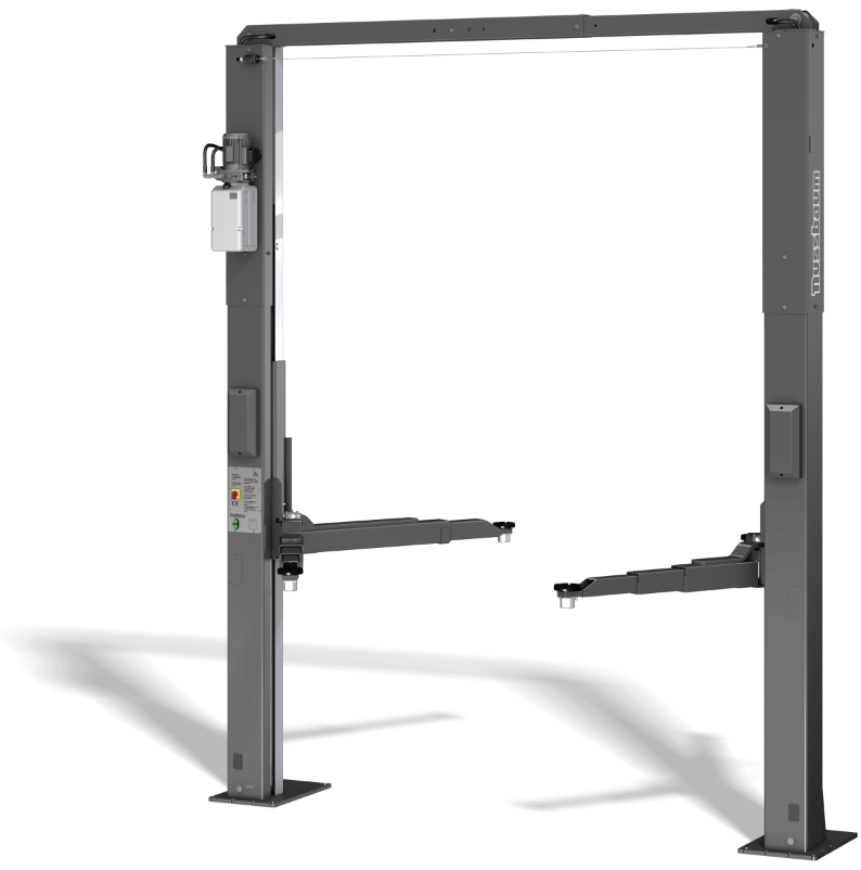 Безрамные, с верхней несущей балкой, ассиметричные. Тросовая синхронизация. Напряжение питания 380-400 В, 50 Гц. Управление осуществляется кнопкой подъема, кнопкой опускания, фиксаторы кареток разблокируются электромагнитными соленоидными клапанами и кнопкой постановки на фиксаторы. Цилиндры установлены в нижней части стоек. Режим CE-Stop - безопасное опускание с малой высоты (~200мм) с подачей звукового сигнала.