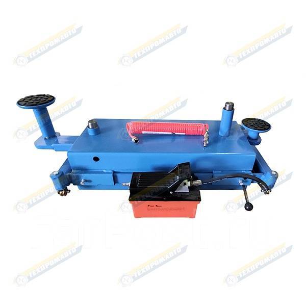Домкрат канавный пневмогидравлический (траверса) ТТP-2 предназначен для вывешивания осей автомобиля при регулировке углов установки колес и слесарных работах. Используется на четырехстоечном, ножничном подъемнике или яме.