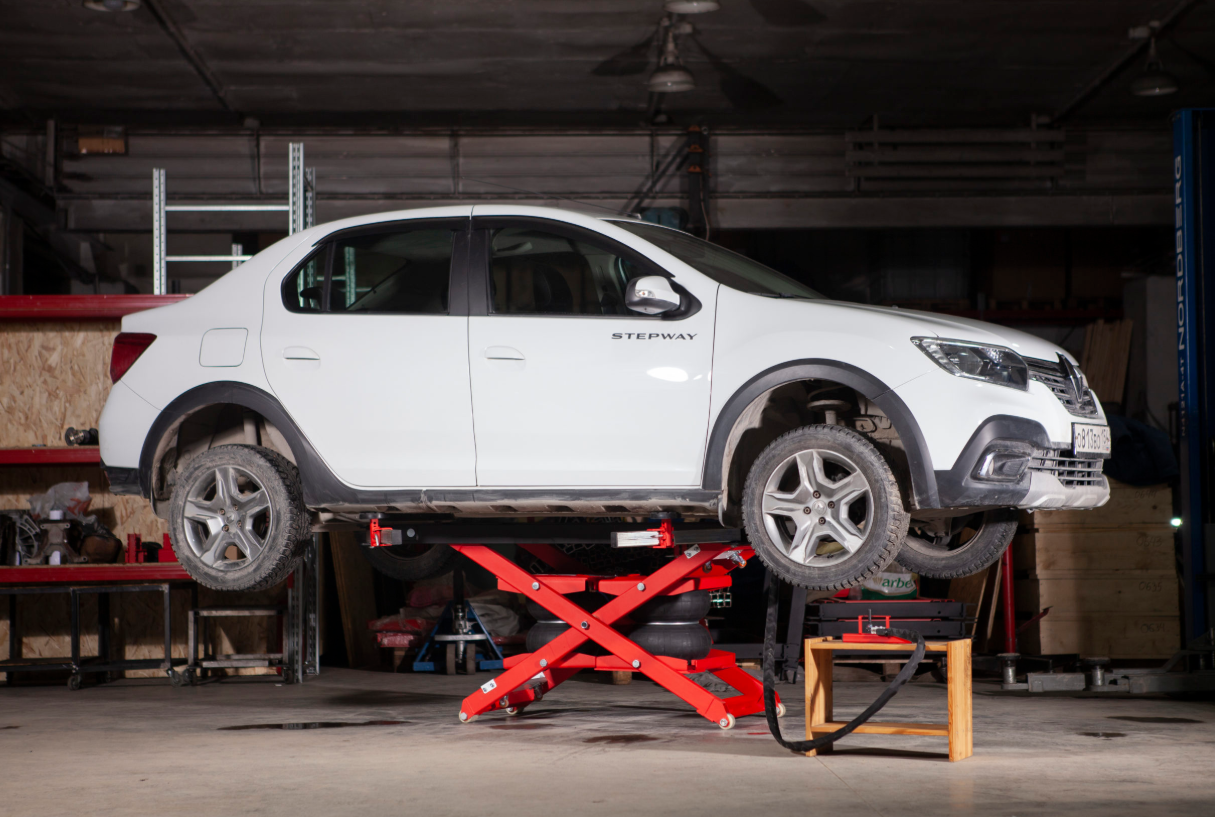 Подкатной пневмоподъемник ножничного типа, за счет своих габаритов и мобильности ,позволяет поднимать автомобили в небольших помещениях с низкими потолками, и даже на улице. За счет поднятия всего автомобиля на высоту до 1 метра, появляется доступ к дверям, порогам и бамперам . Данным подъемником активно пользуются кузовные цеха и детейлинг-центры