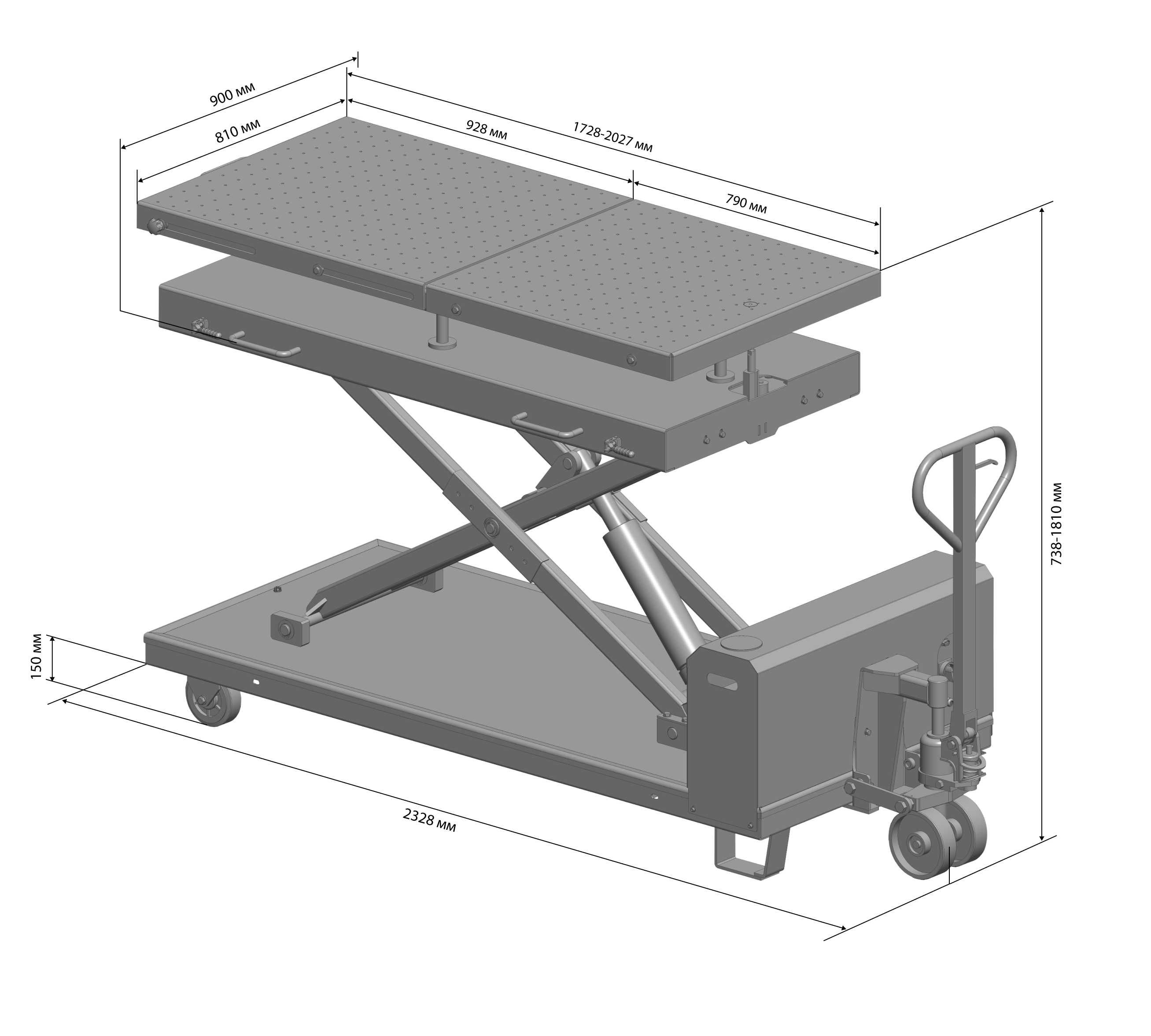 Размеры платформы: Длина от 1728 до 2026 мм, ширина — 810 мм