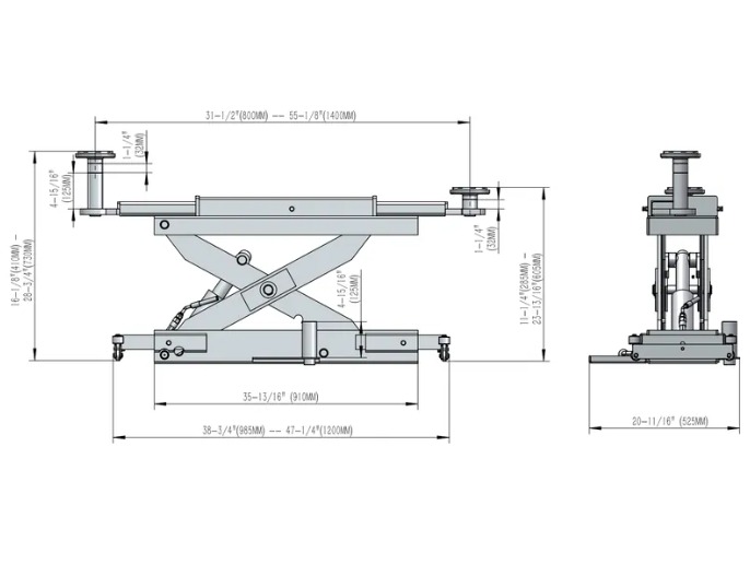 Регулируемый диапазон ширины между лапами: 800-1400 мм