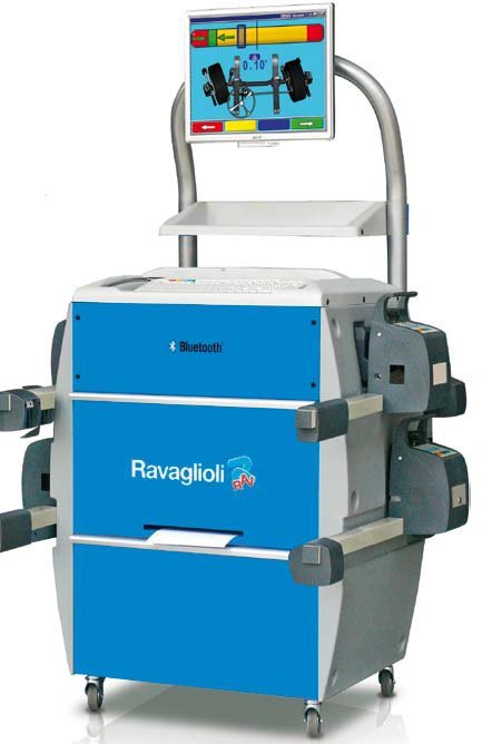 На 4 колеса, компьютерный, инфракрасный (ССD) - 8 датчиков образуют замкнутый измерительный контур в горизонтальной плоскости. Полностью беспроводной (с Bluetooth).