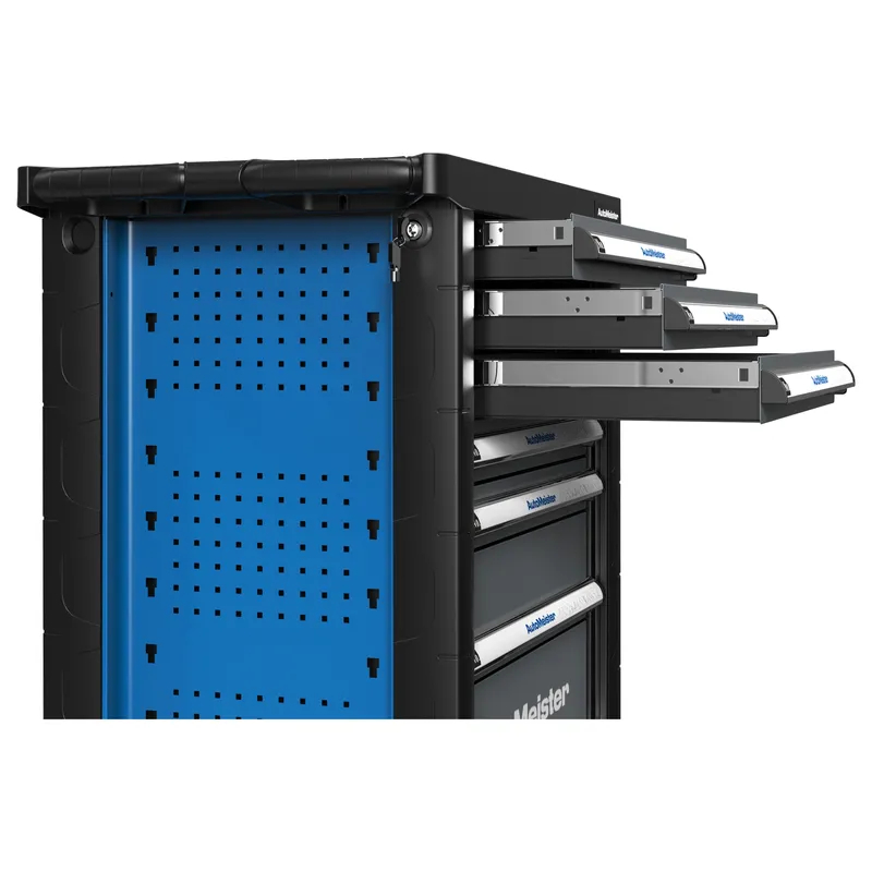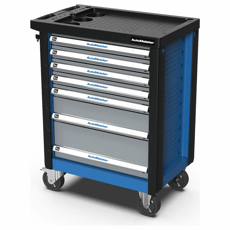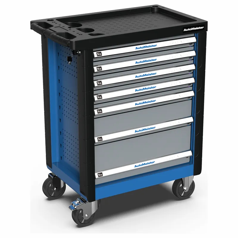 Инструментальная тележка AutoMeister TF1C7N с пластиковым обвесом оснащена колесами диаметром 125 мм, что обеспечивает легкое перемещение даже по неровным поверхностям.