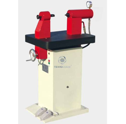 Нажимая ногой на педаль подачи воздуха стенд опускает шток тем самым прижимает клепку к наковальне;
